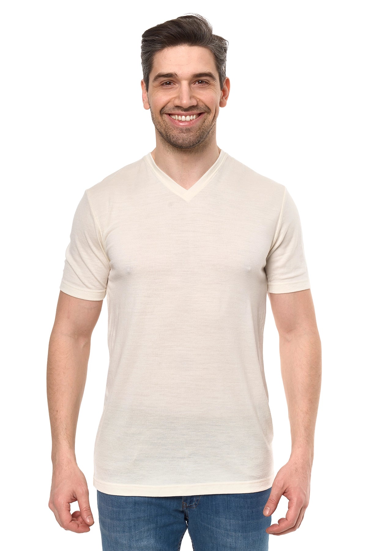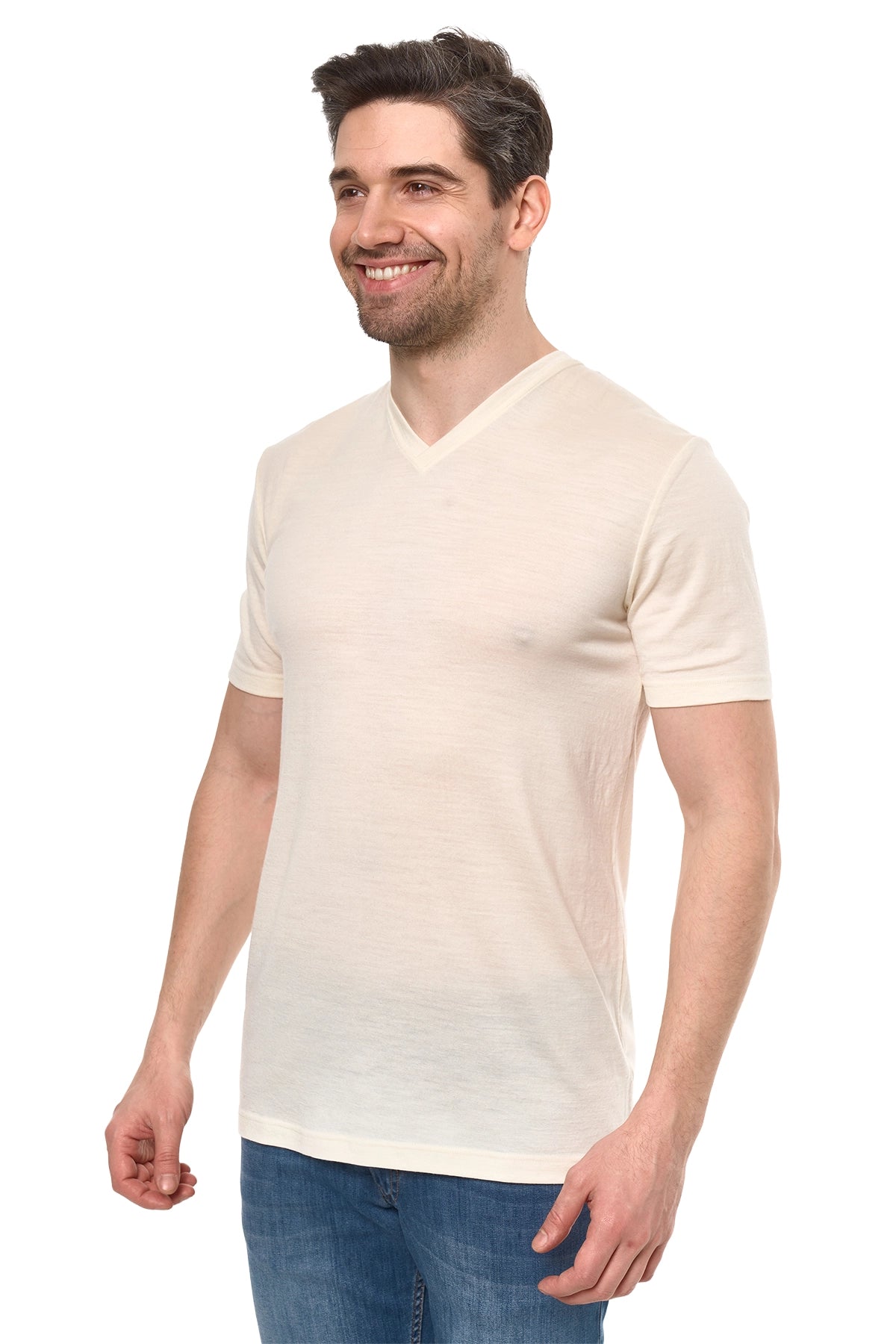 Men's Merino Sport T-shirt Ivory White | V-Neck
