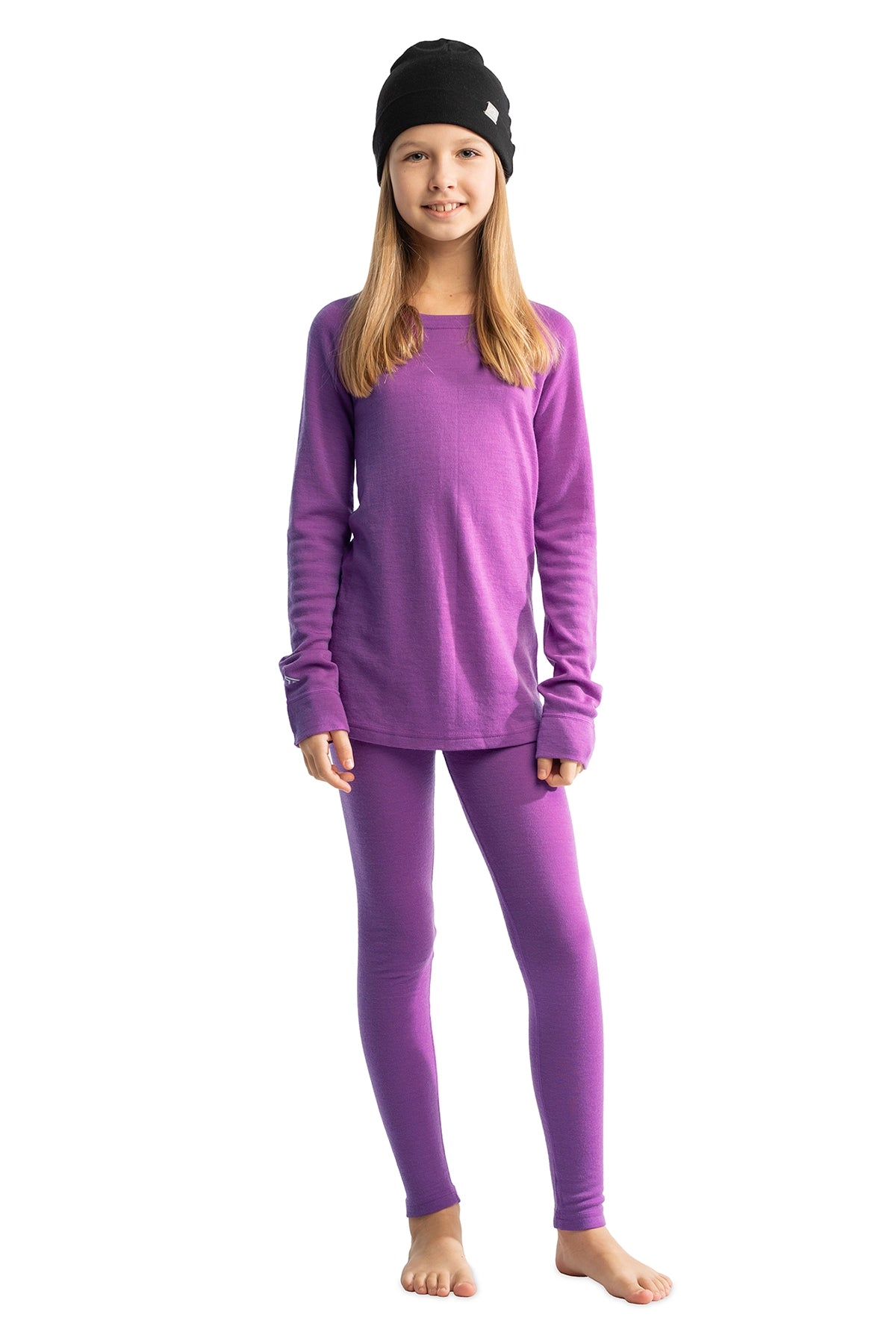 Soft, stylish, and smart — the Violet Purple Kids’ Merino Set is made for adventure and comfort. Crafted from fine Merino wool, it offers exceptional thermoregulation, keeping your child warm in the cold and cool when it’s warm. The fabric’s breathability and moisture control prevent clamminess, while natural odor resistance keeps it fresh longer.