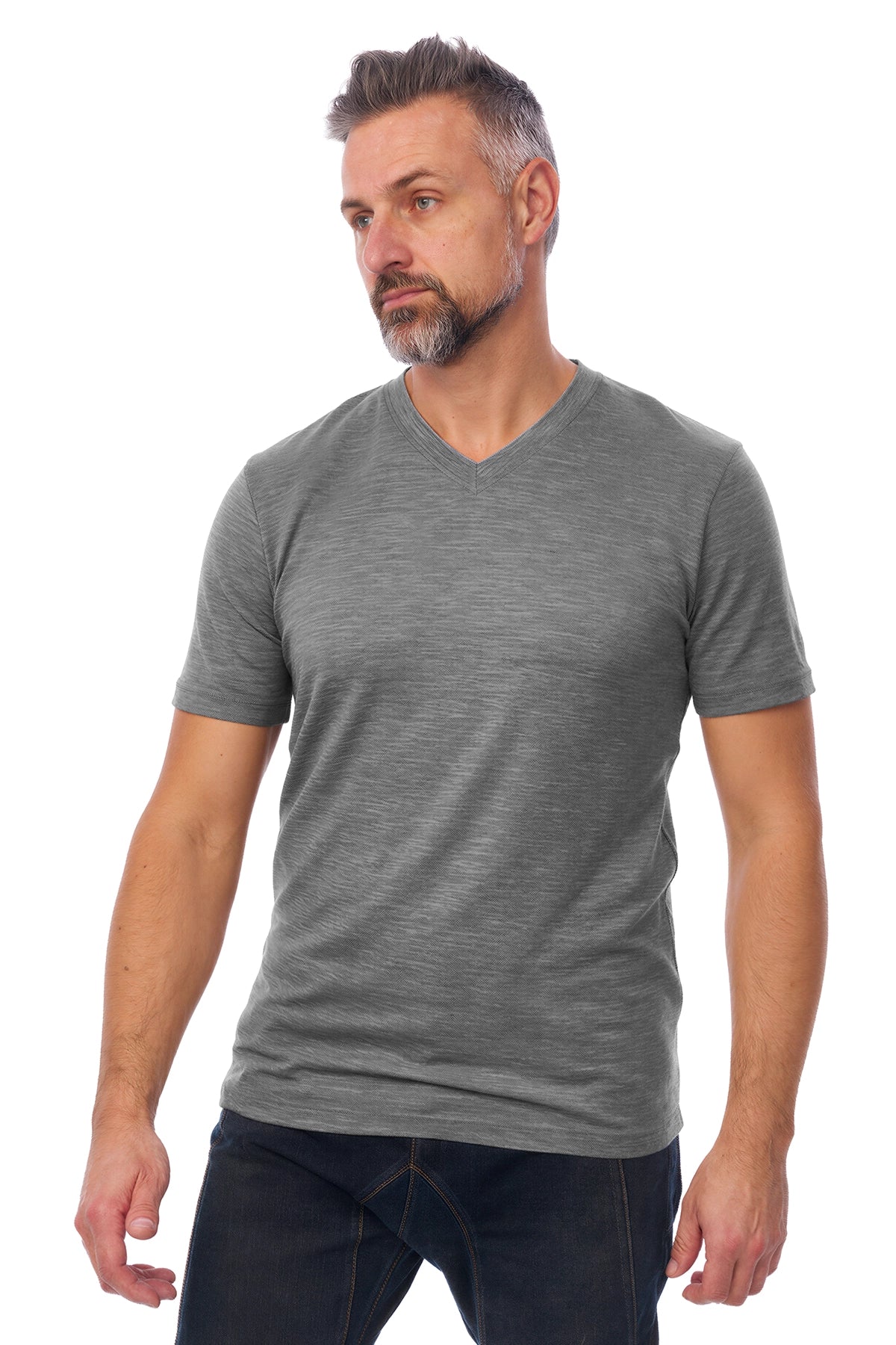 Men's Merino T-shirt 165 Grey Melange | V-Neck