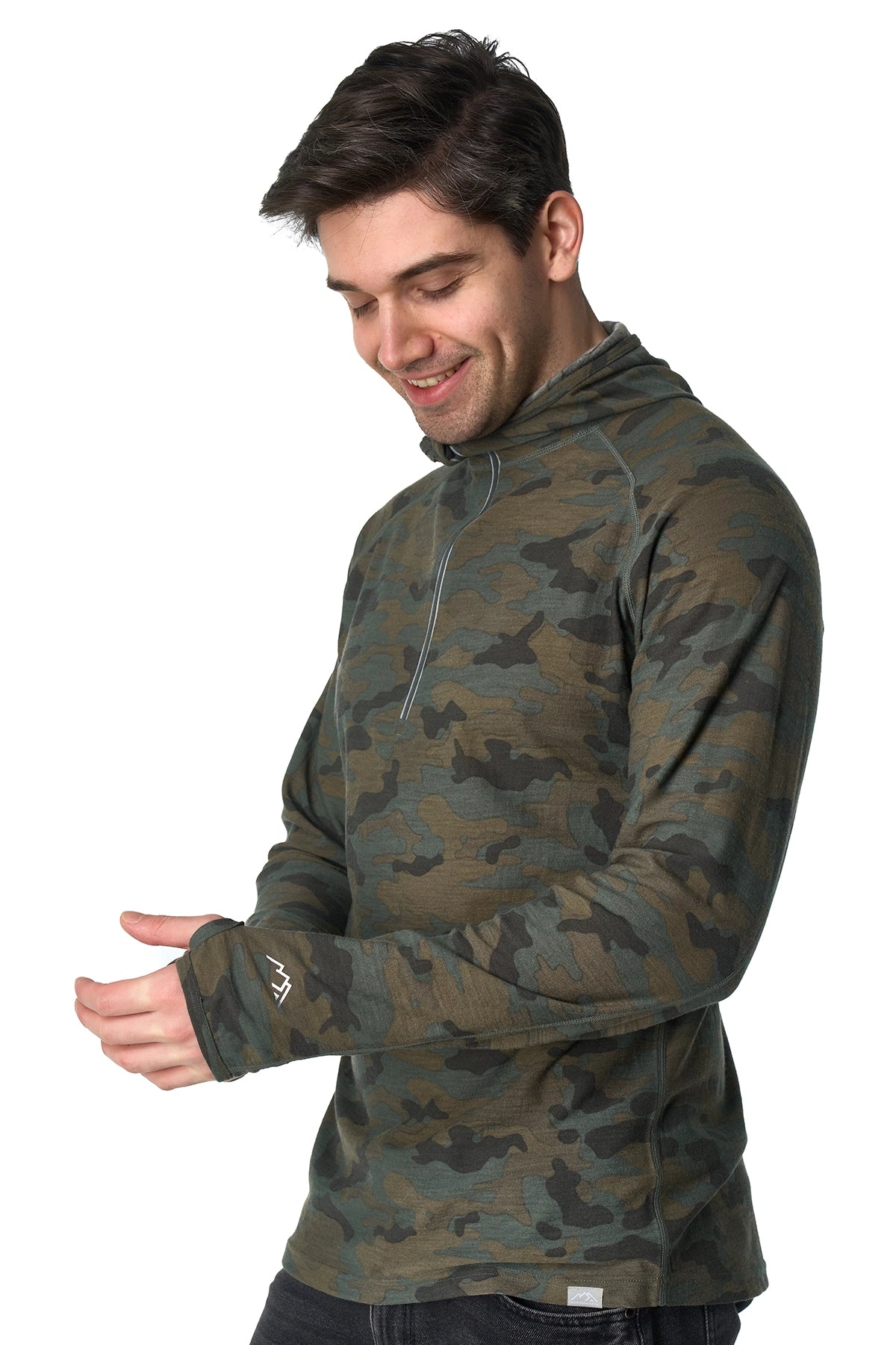 Men's Merino Wool Half Zip Hoodie 190 Camo