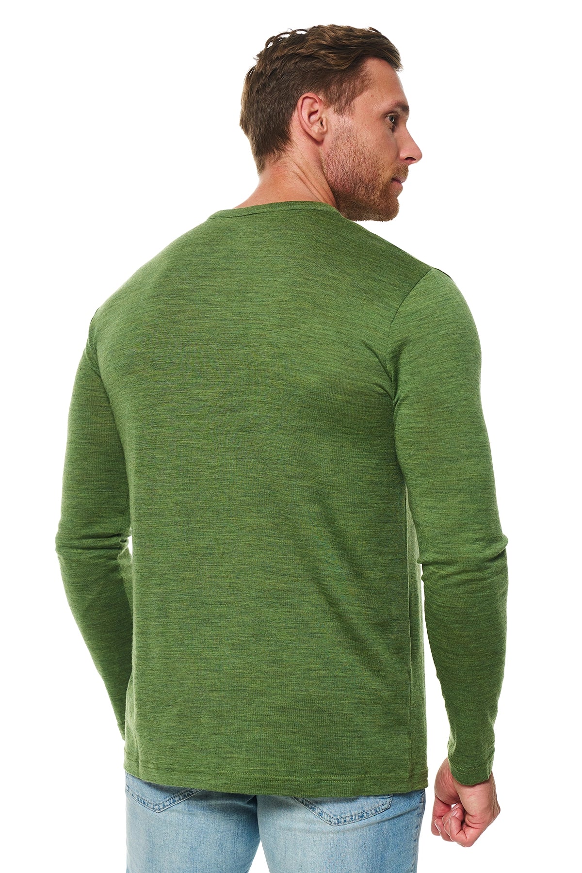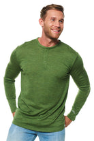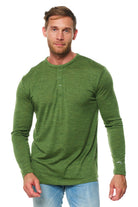 Men's Merino Wool Henley Long Sleeve 170 Green Olive