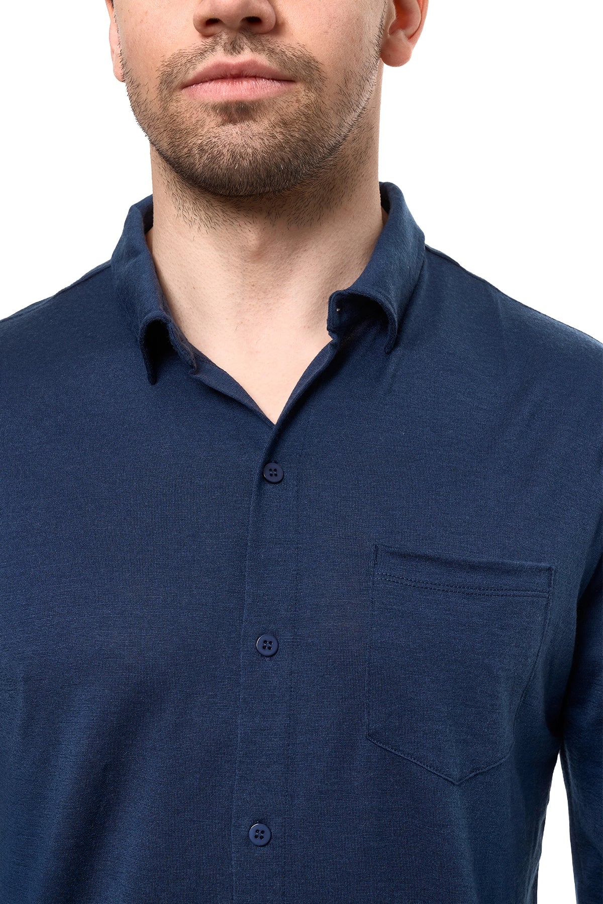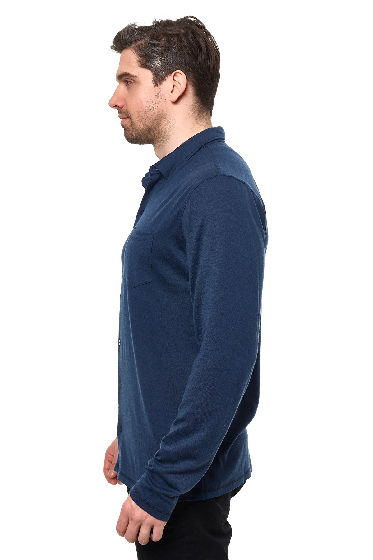 Men's Merino Button-Up Long Sleeve Navy