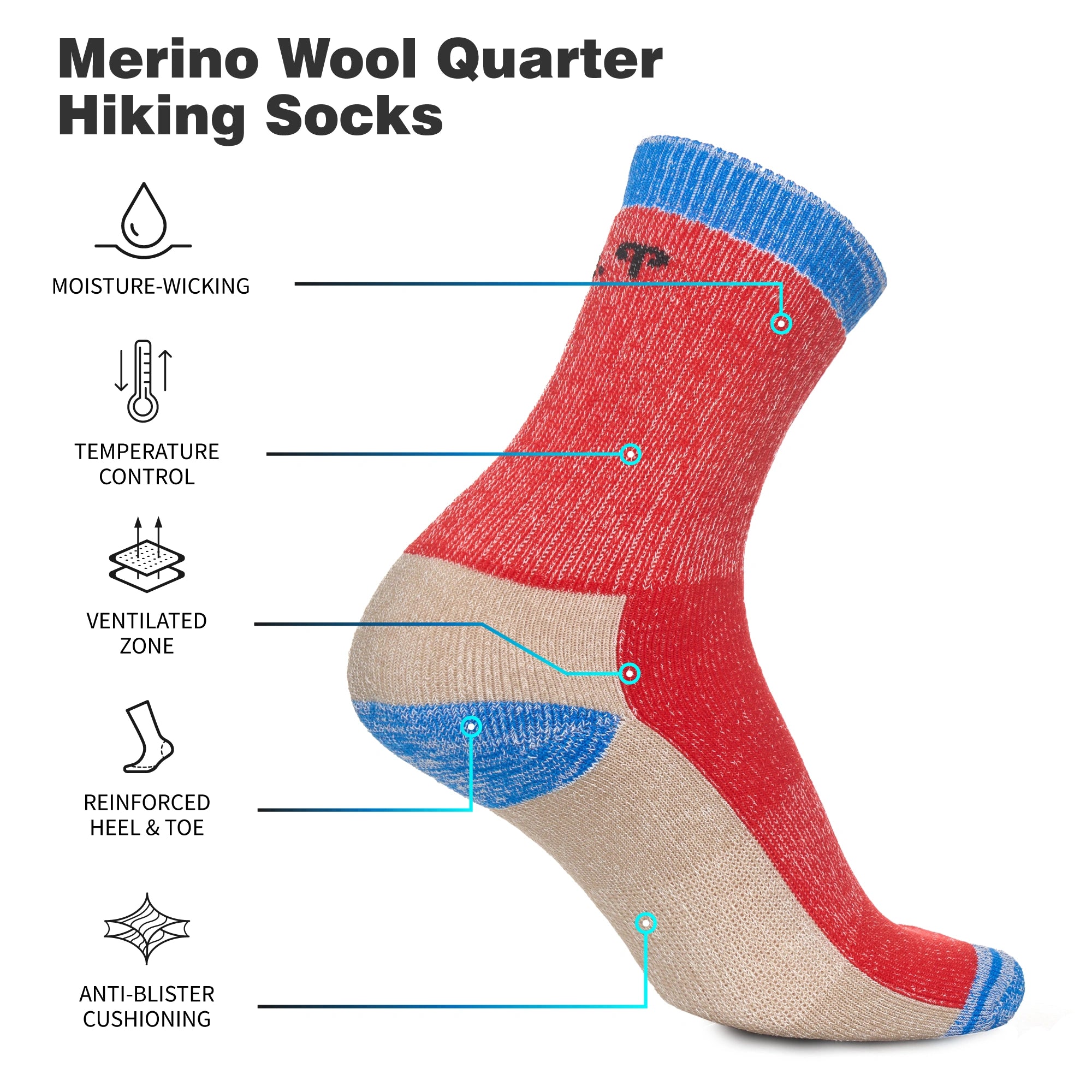 Made for long-distance runners and daily trainers, our Merino Wool Running Socks offer advanced comfort powered by nature. The merino fibers regulate temperature effectively and promote breathability, helping prevent overheating. Sweat is rapidly transported away due to superior moisture-wicking abilities, while odor resistance ensures long-lasting freshness.