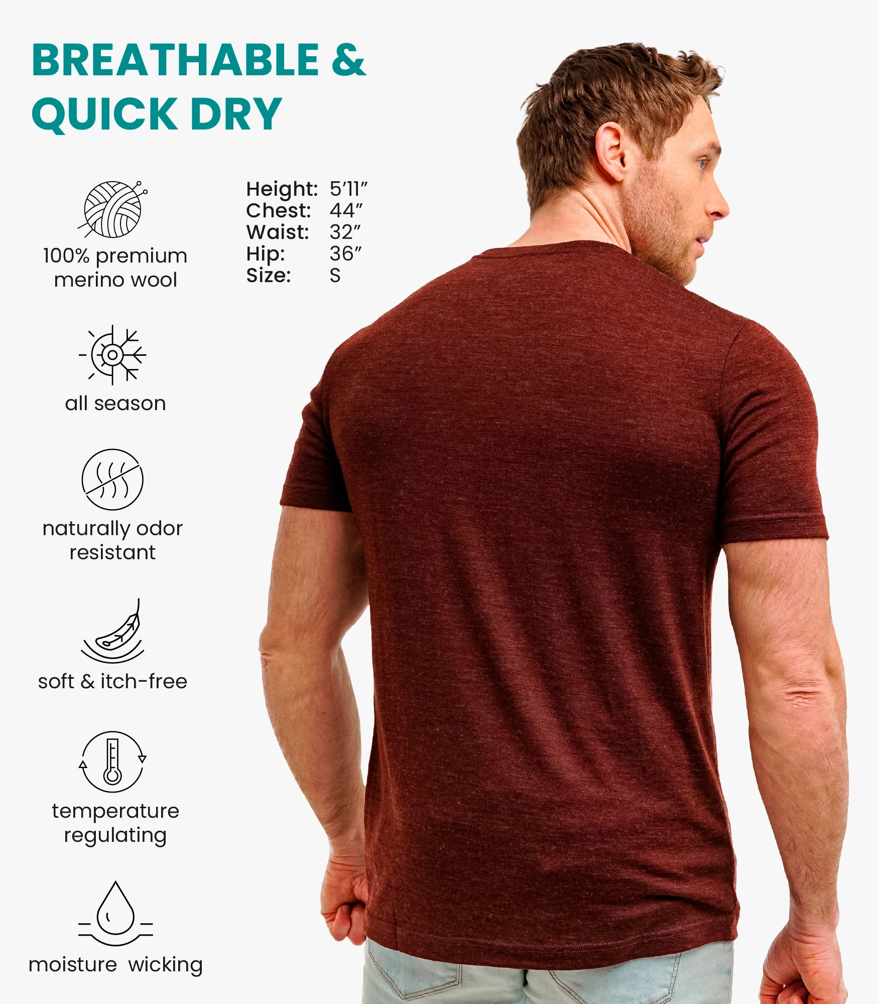 Discover the allure of the Men's Merino T-shirt in the deep Bordo Wine hue.
