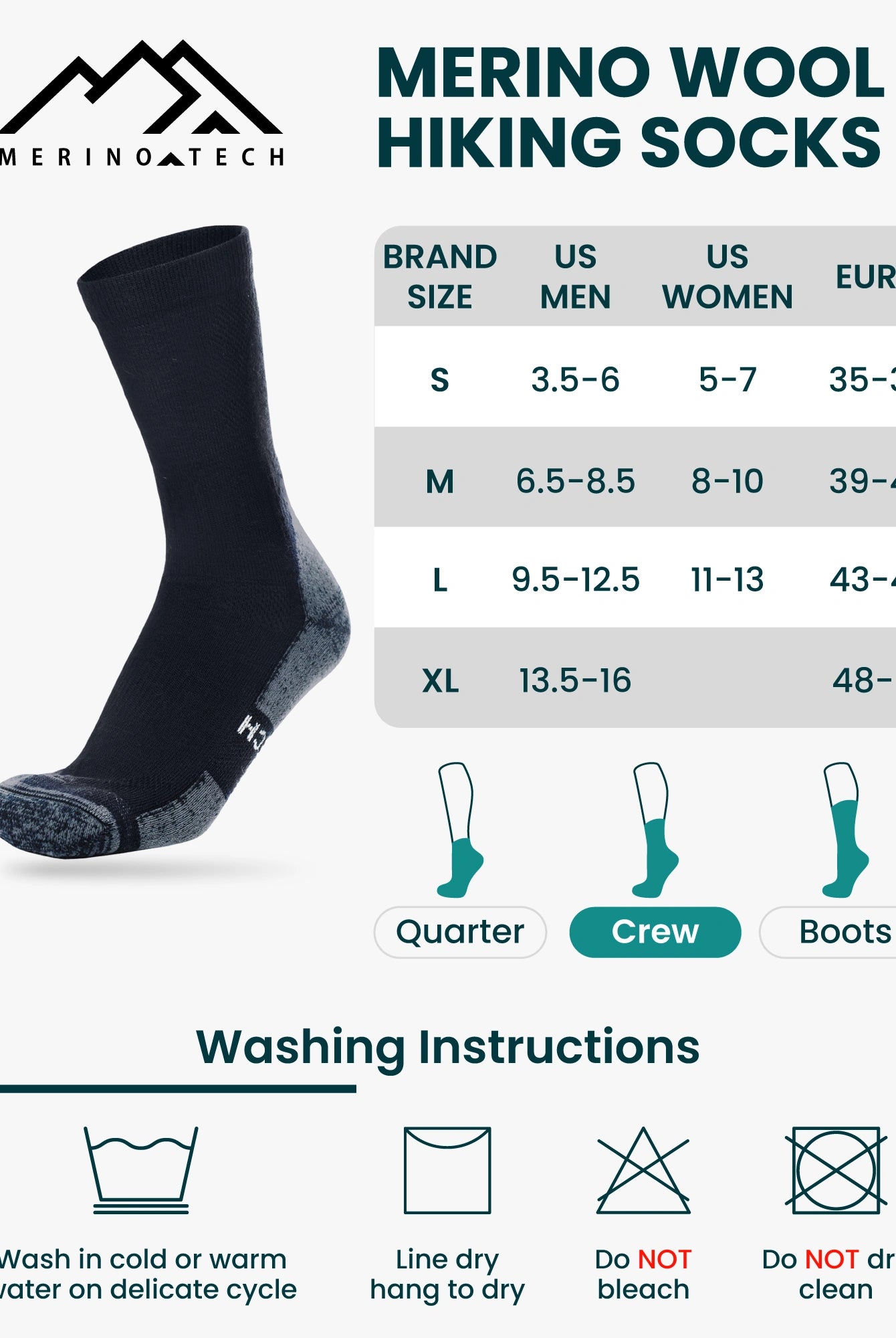 Conquer the trails with our Hiking Socks collection, crafted from premium Merino wool to offer exceptional comfort, durability, and performance. Designed to keep your feet dry, warm, and blister-free, these socks provide the perfect combination of moisture-wicking, cushioning, and breathability. Whether you're hiking through rugged terrains or taking a leisurely walk, our socks are built to keep up with your every step.