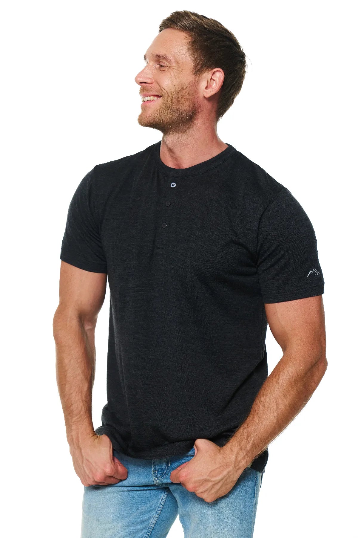 Men's Merino Wool Henley T-shirt 170 Charcoal Grey
