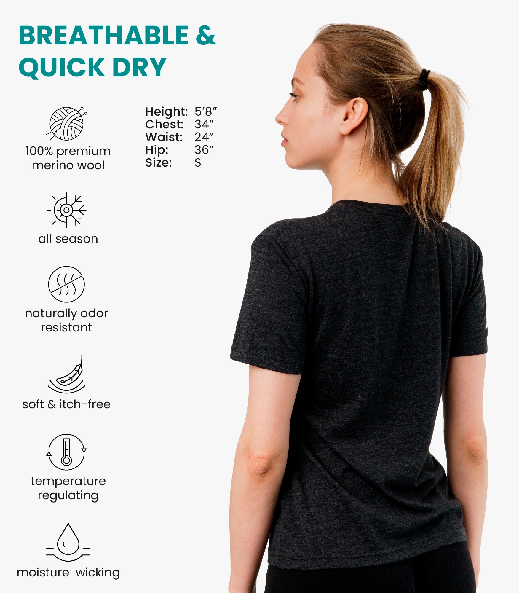 Women's Merino T-shirt 165 Charcoal | Crewneck (+socks)
