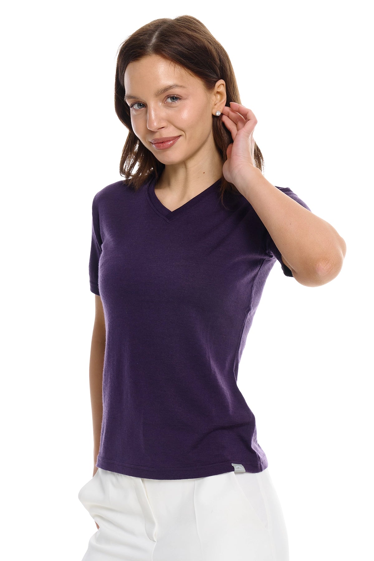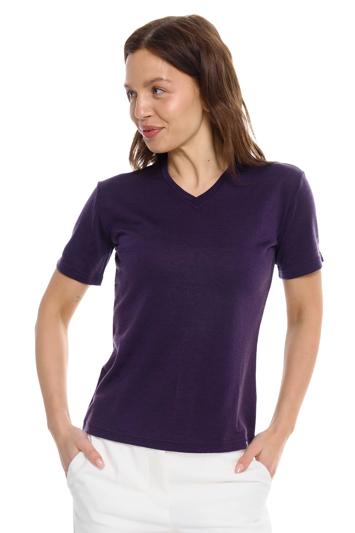 Women's Merino T-shirt 180 Dark Purple | V-Neck (+socks)